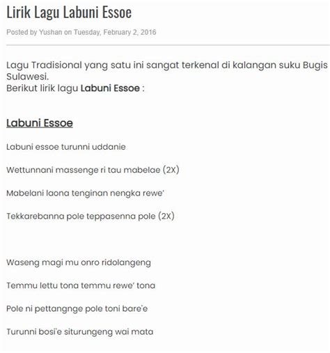 1. Apa itu Lirik Lagu Labuni Essoe?